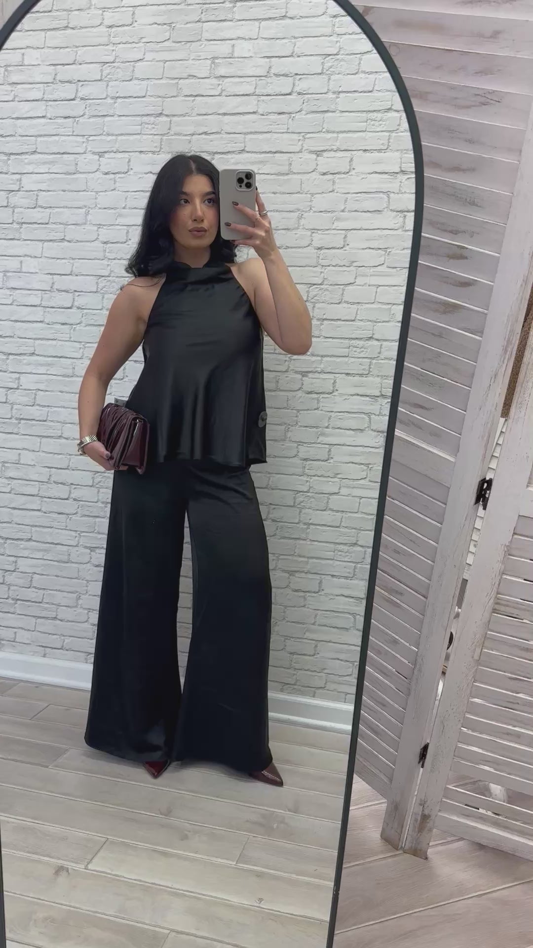 - Satin halter top