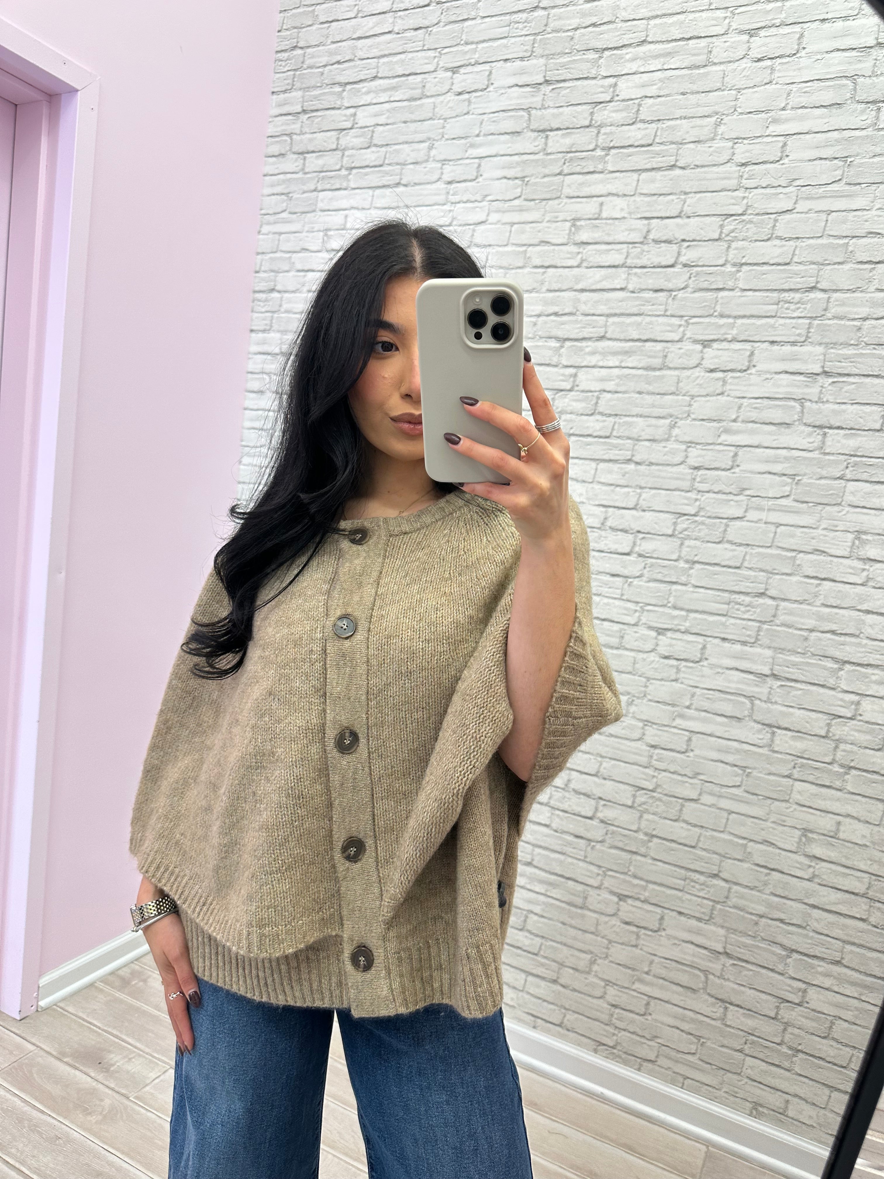 Skip the accessory hunt and go for this sleeveless wool sweater with attached shawl that's ready to go. Button up, stay warm, and tackle your day with one less thing to think about. Chic and practical!