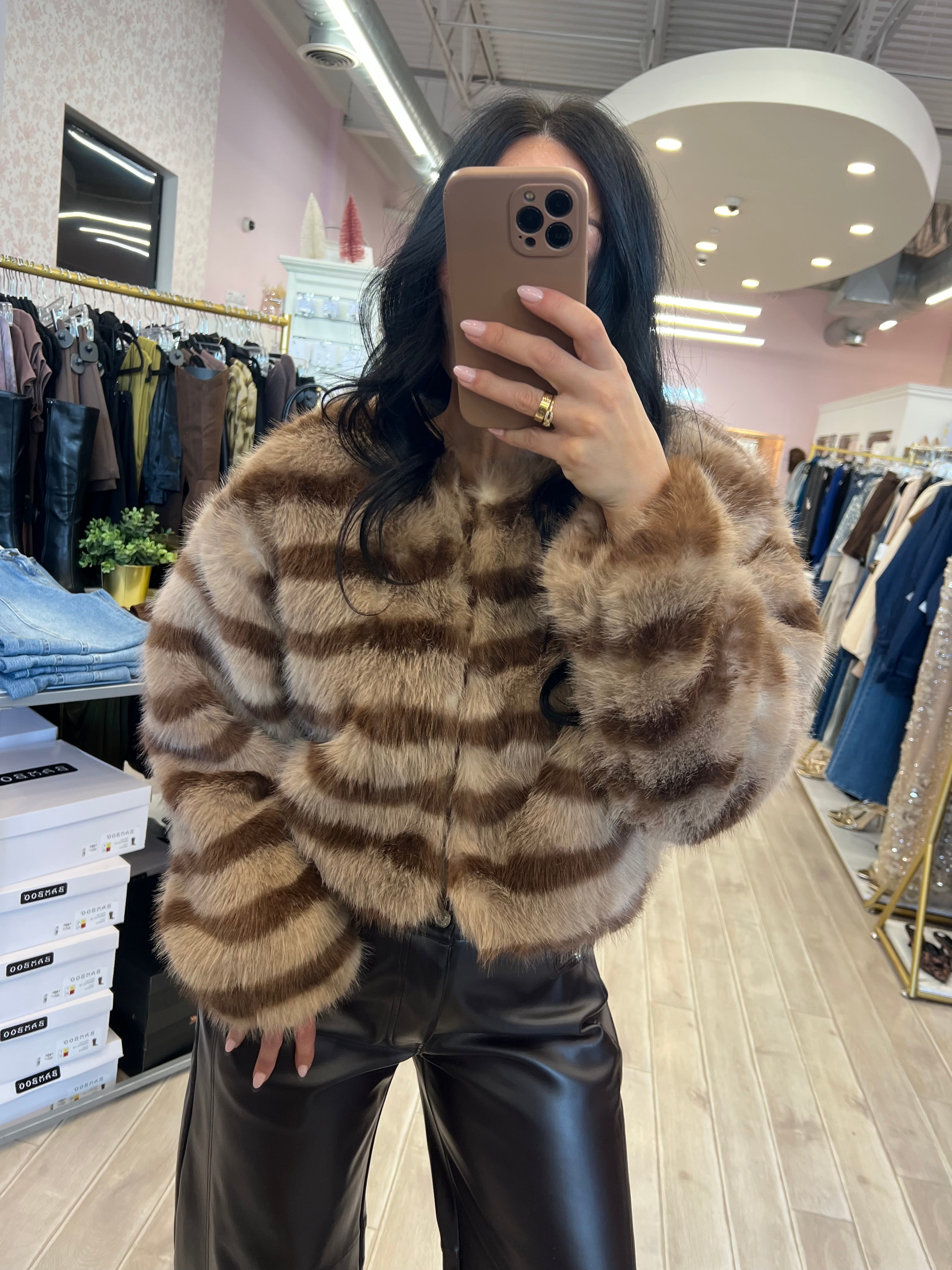 Meet your new favorite layer! This waist-length faux fur jacket is pure fun—soft, fuzzy, and ready for anything. Lightweight enough to throw on over a dress or your favorite jeans!