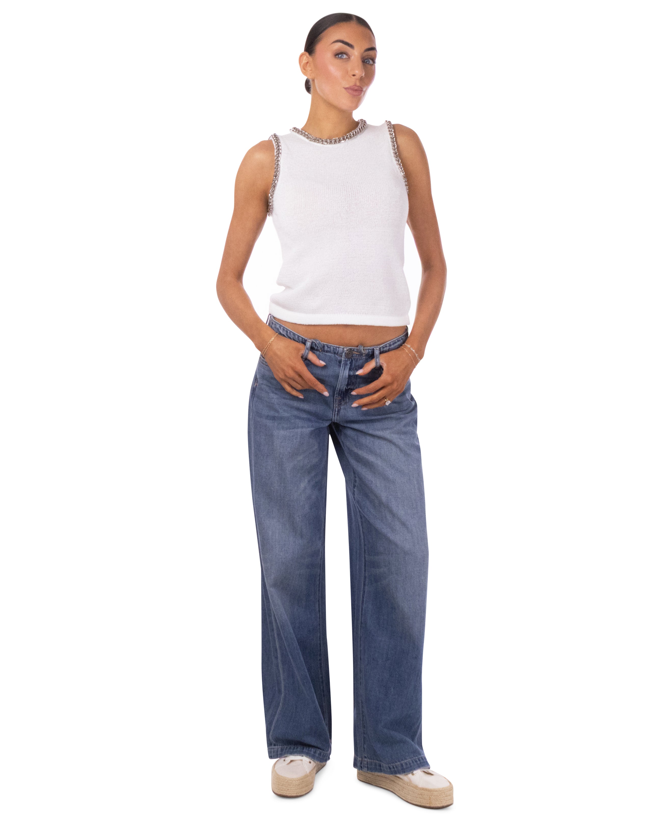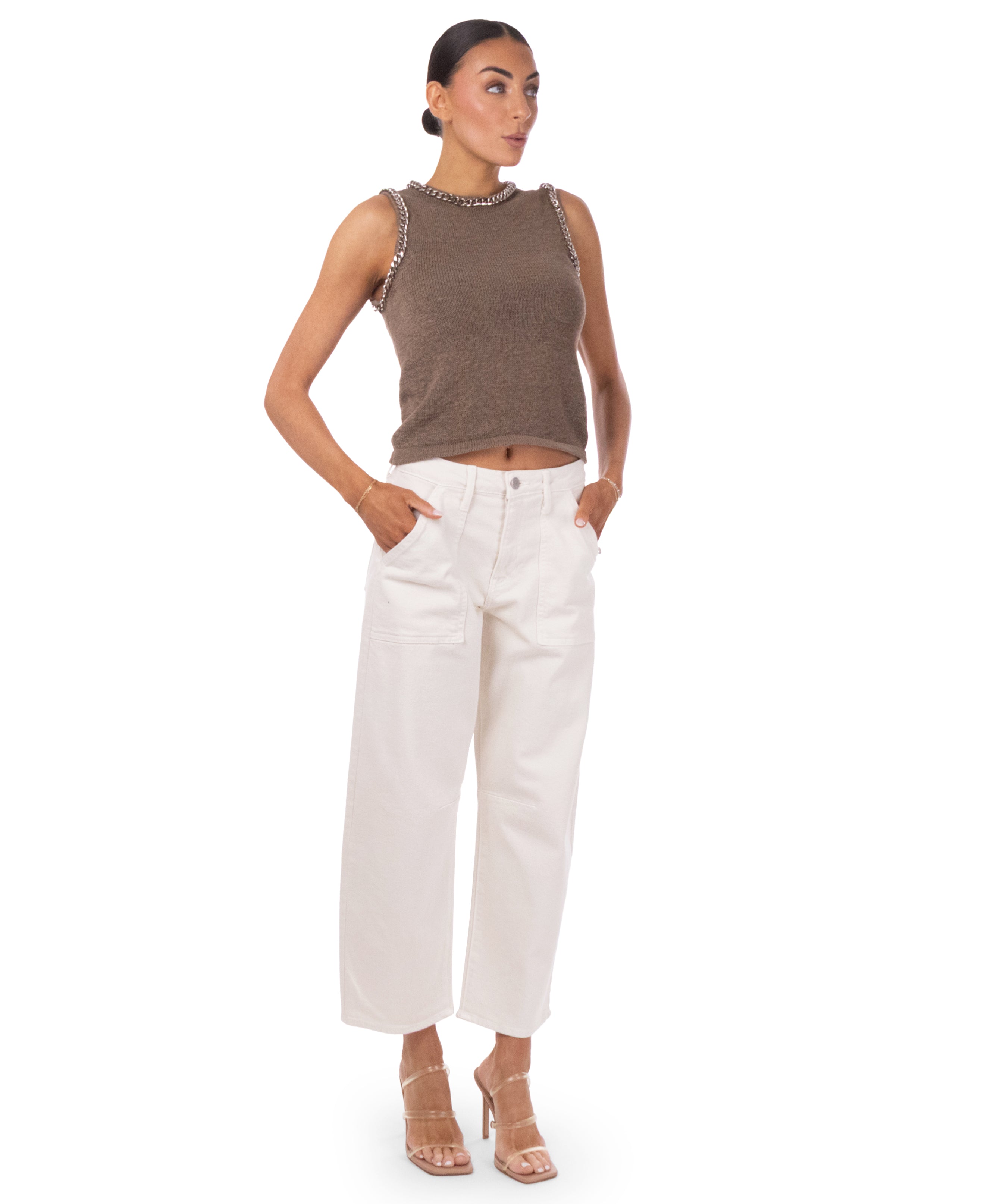 Chain trim detail around neckline