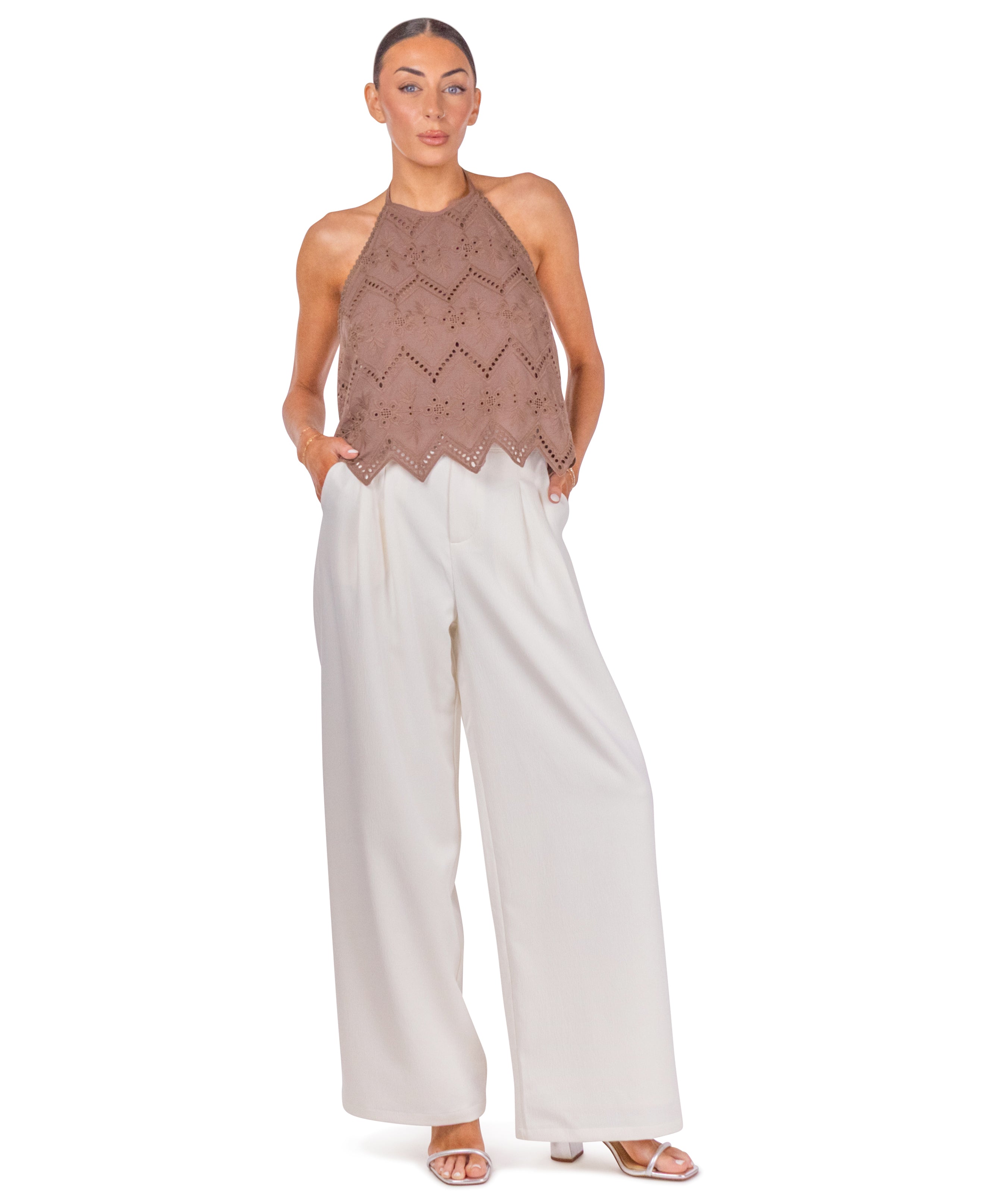Brown halter crop top