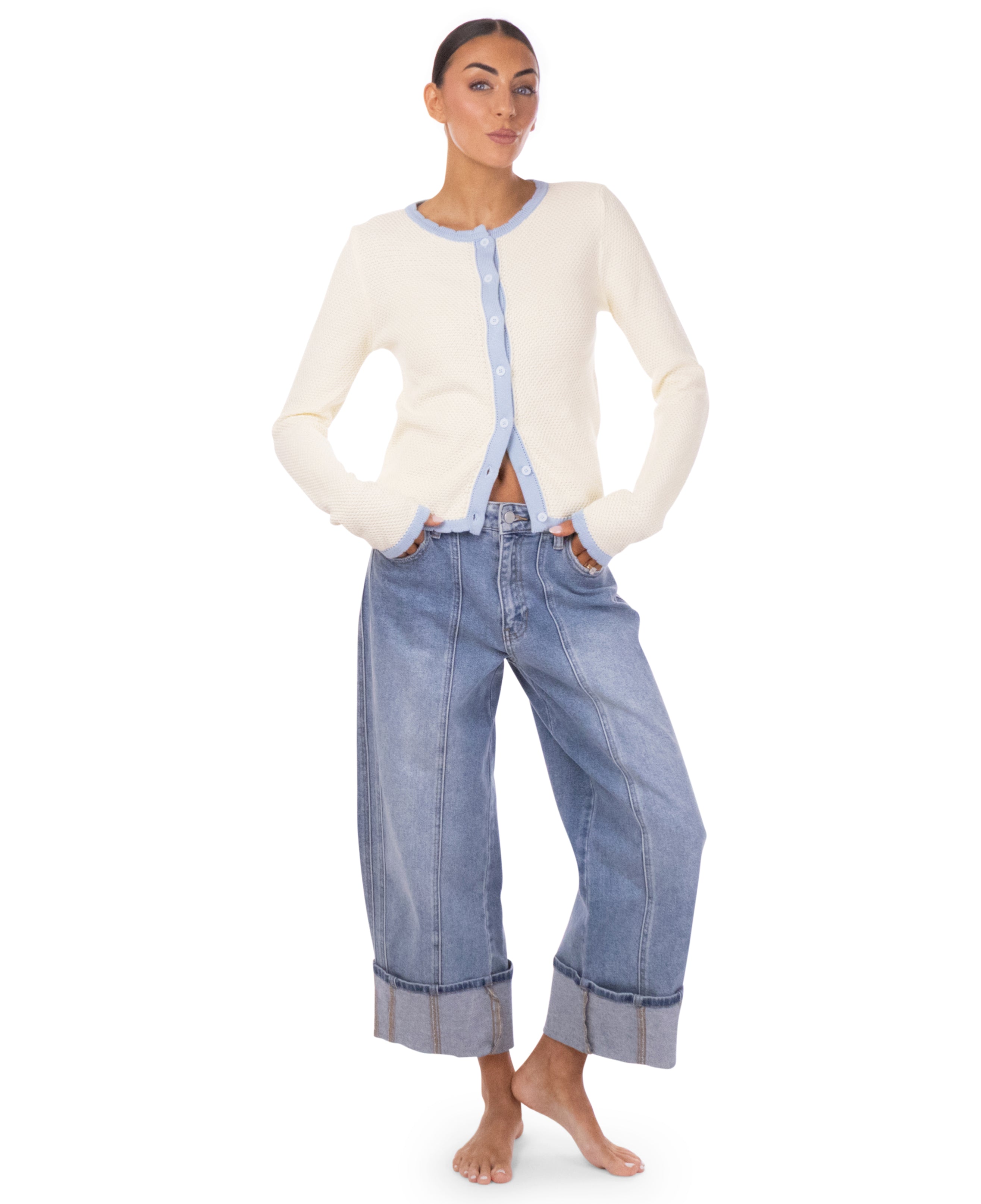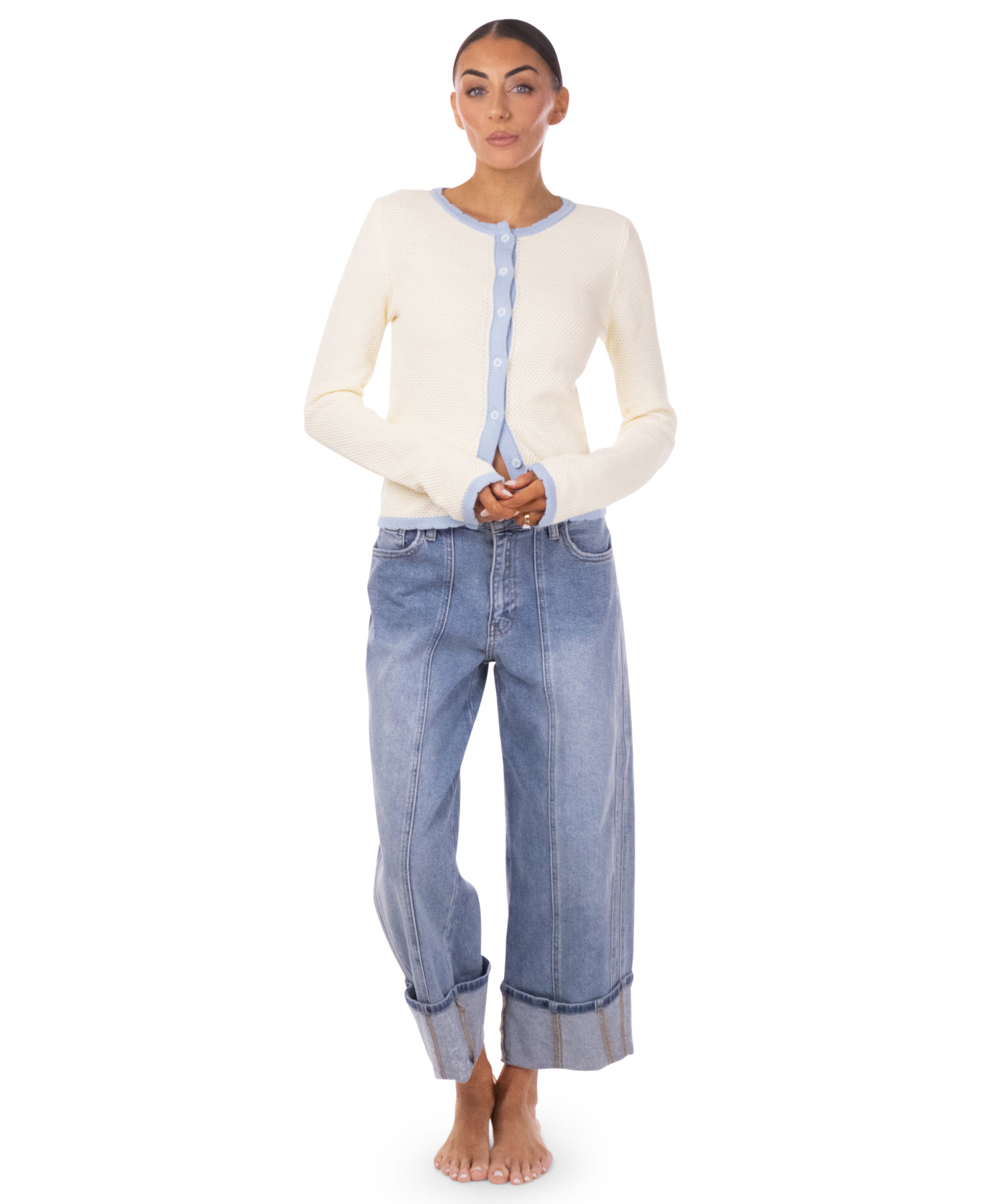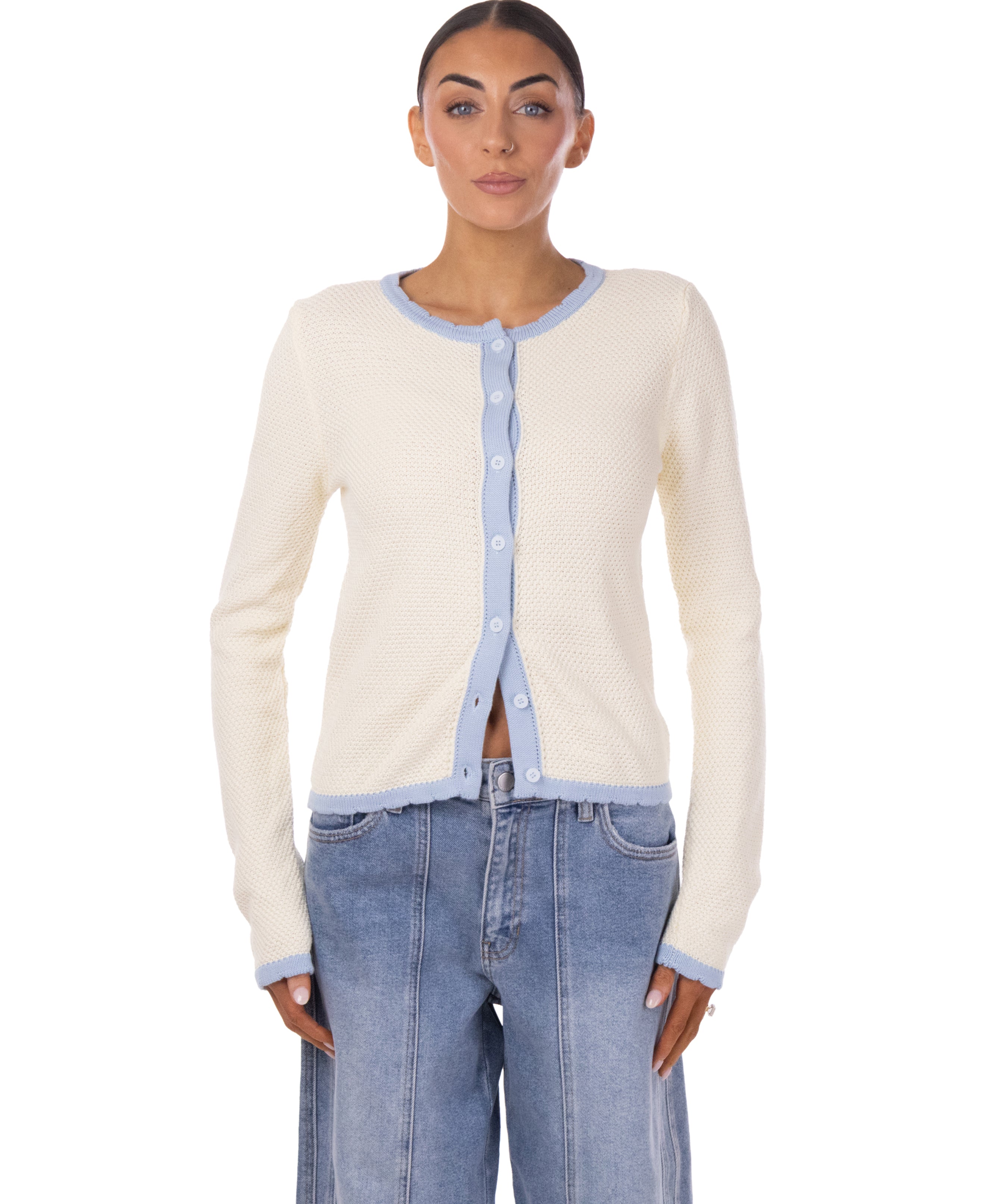 - Two-tone rib knit cardigan